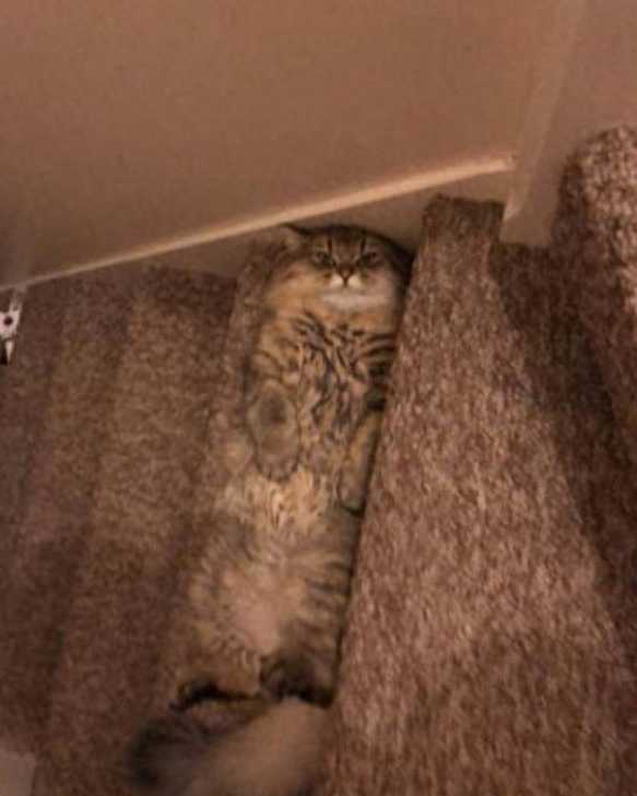 铲屎官表示:“我家喵最喜欢的就是在楼梯上隐身,有的时候,真的看不到它啊。”