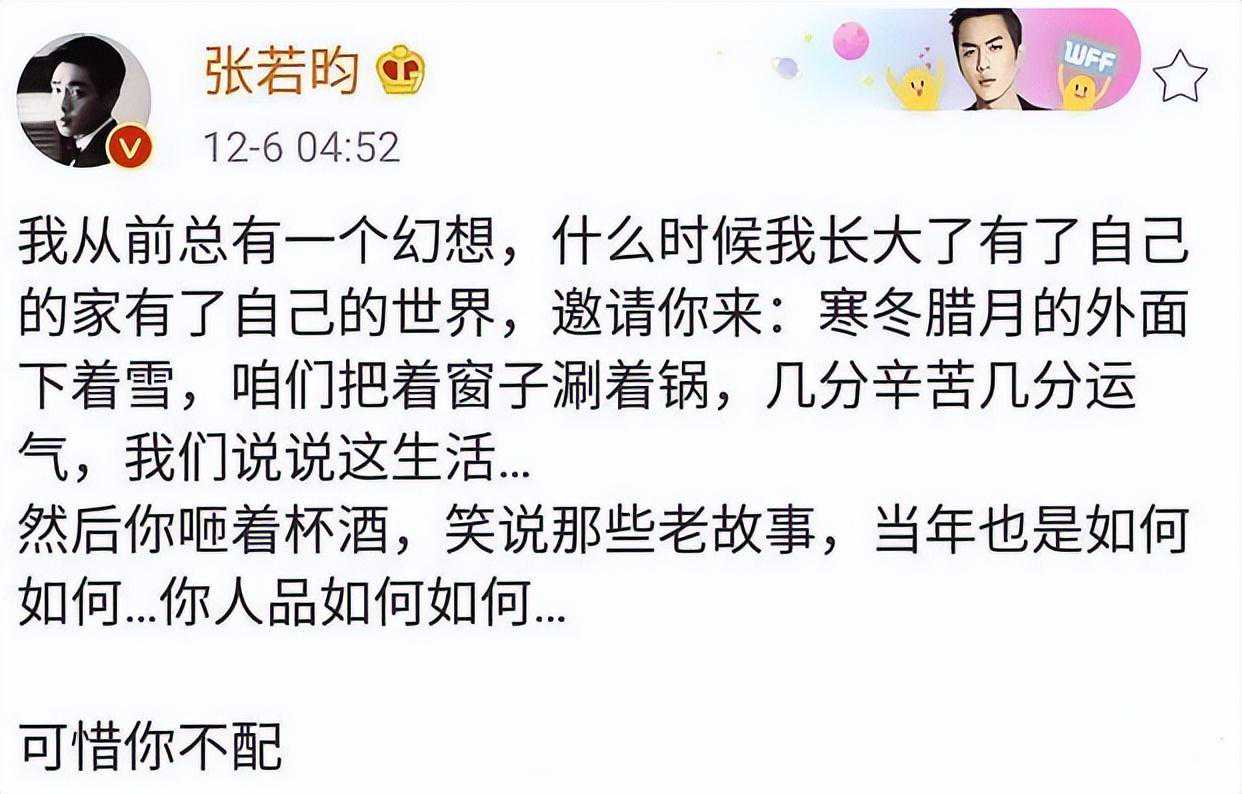 如果真要比较个一二三的话,那么张若昀的家庭混乱程度绝对是数一数二的,然而这一切都是他的父亲导致的,一个比自己还小的明星成为自己的后妈,与父亲对薄公堂..