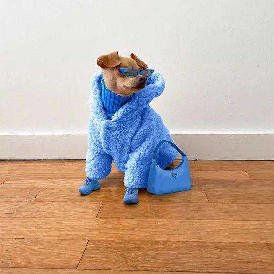 和往常我们看到的潮流狗狗们不一样的是,Billie的穿搭风格更靠近设计师品牌。