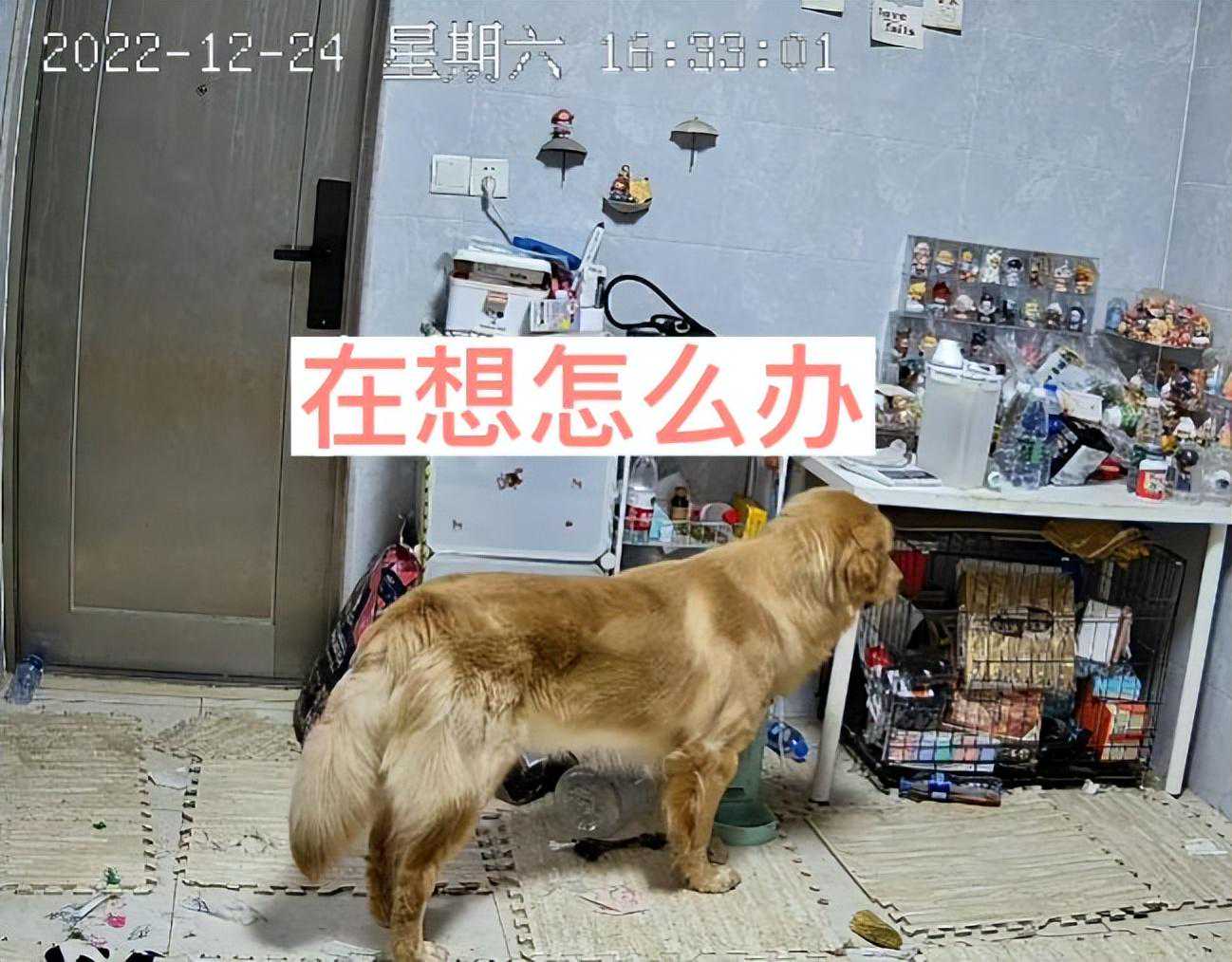 从监控里可以看到,当金毛听到女子哭的那一瞬间,它原本还举在半空中的尾巴就垂了下来,整只狗都看上去特别沮丧。