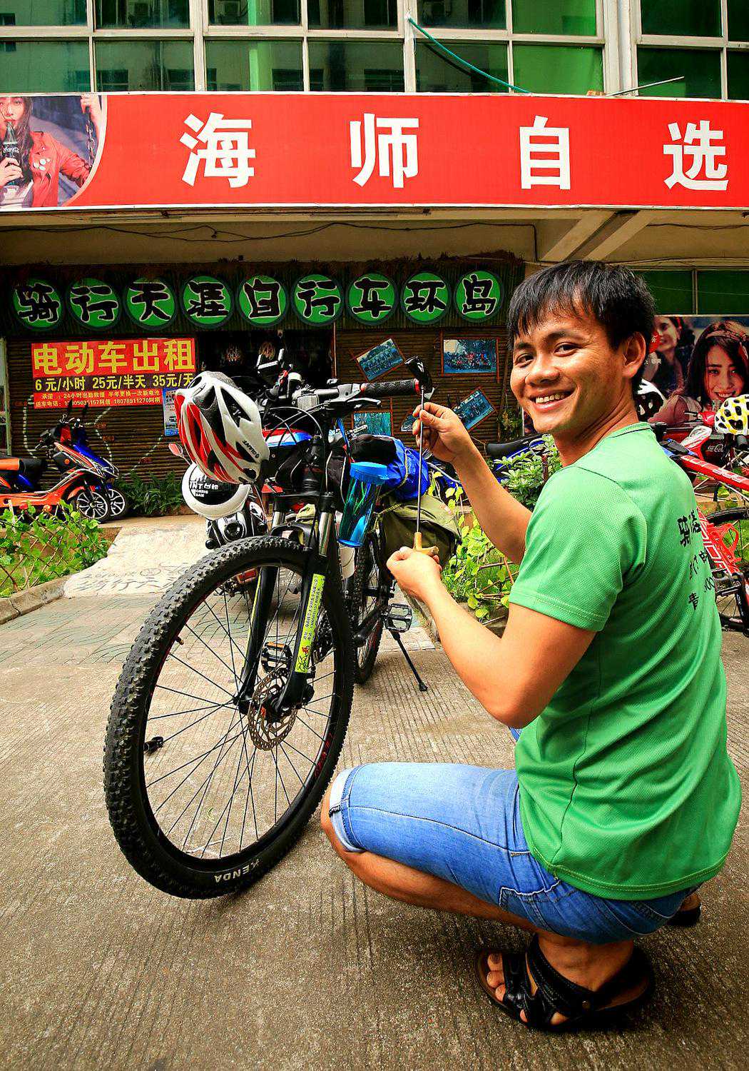 到达海囗,直奔骑行天涯自行车环岛租车店,办理租车事宜。