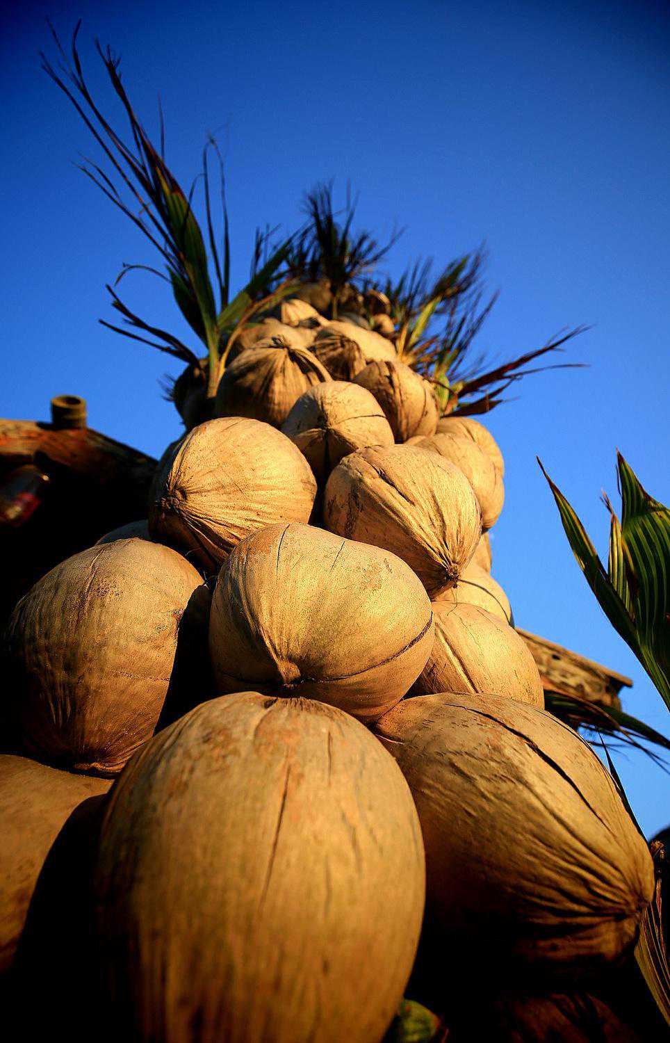 之前也听当地的老百姓说,椰子掉下来伤人伤车的事,看来一点都不假。试想,这么重的椰子从四五米高的椰树上突然掉下来,要是正好落在人的脑袋上,后果可想而知,想到这,我赶紧低头紧了紧头上的头盔。