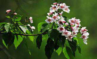 楸树开花极美,不仅花型灿烂,花色也好看,内敛又不失高雅。它的外形高大挺拔,枝叶茂盛,开花的时候活像一个青春大小伙带着一顶花帽子,样子好看极了。正是因为如此,在国外楸树还有“月老”的作用。
