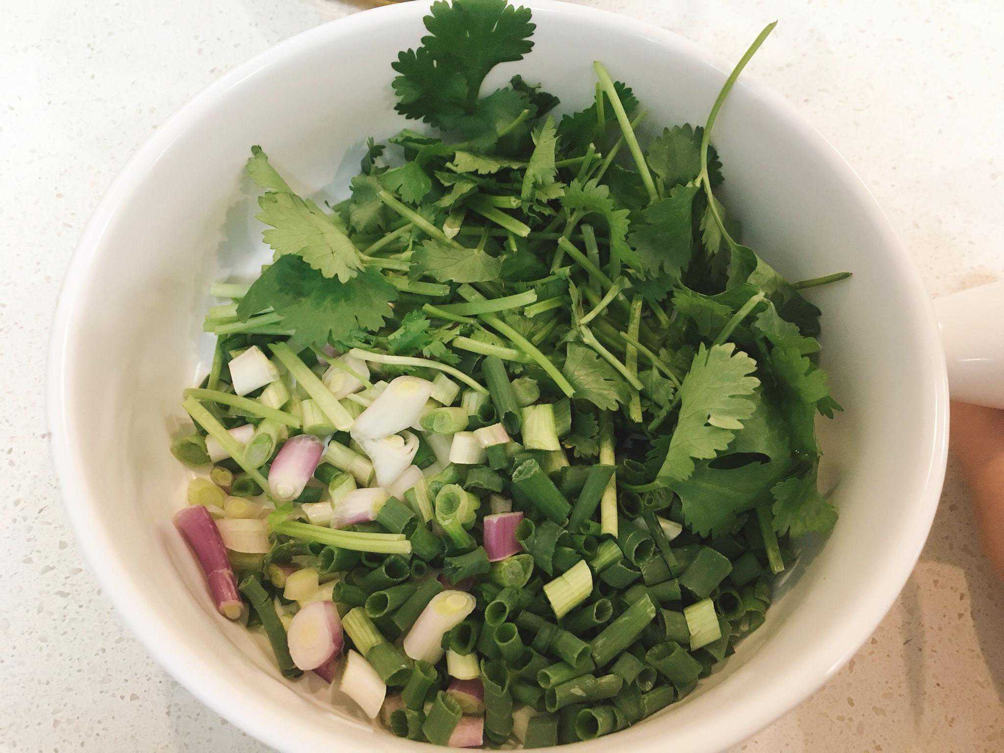 我看见这边底料区放的是香菜,香葱,蒜泥,蚝油,一大桶酱油,还有一桶素油,还有一盆他们叫折耳根的,一节一节拿水泡的,头一回在现实中离折耳根这么近,盛起来一闻,喔……不行不行,接受不了,盛了点香菜,香葱,蒜泥,一大勺蚝油,服务员说蚝油会很咸,我又放回去,留了一小点,这样子搅拌起来,看着也没法吃,松松散散的根本搅拌不起来,没有麻酱,没有韭菜花,没有酱豆腐,看看他们的酱油,这里大概是拿酱油兑吧,又兑了很大一波酱油,看着碗里有稀有干了,搅拌均匀,看着也挺好看,一汪酱油中碧绿的小葱香菜,闪闪烁烁。