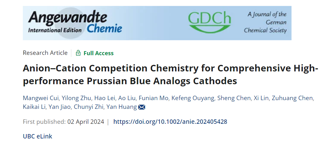 哈工大(深圳)黄燕教授、阿德莱德大学焦研教授,Angew.:普鲁士蓝材料性能不够,阴离子来帮忙