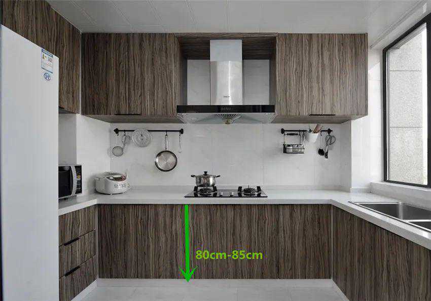 身高在165cm以下,高度在80cm左右;身高超过165cm的,地柜高度在85cm左右为合适。