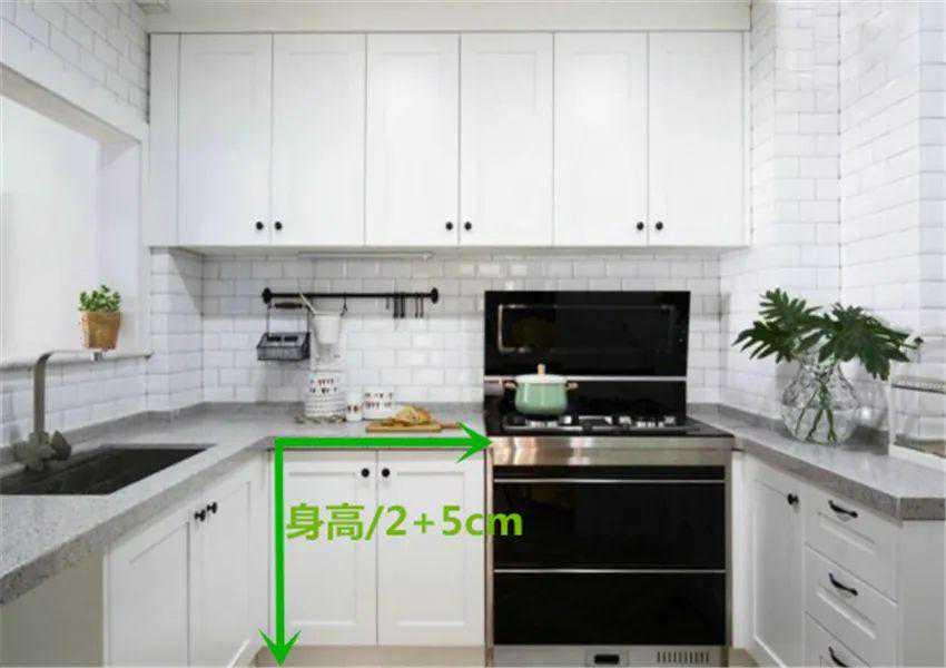或者按照胳膊肘的高度来测量:肘高-10~15cm,这样的台面,更加符合人体使用需求。