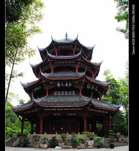 可惜的是在成都市内我没有见到狗,不过在成都的五天时间里,还是见到了两个多小时的太阳。幸好,成都市内还有那些斗檐飞朴的古朴建筑,还有随处可见的红花绿树,还有街边闲坐喝茶的成都人民..