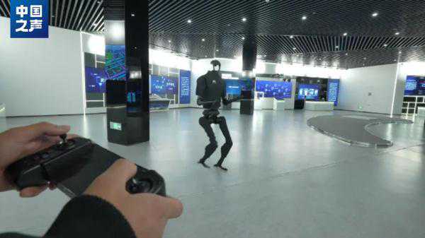 过去几年,王兴兴带领团队一直深耕四足机器人研发。他介绍,相比传统轮式机器人,四足机器人拥有更好的极端地形通过能力——可以上楼梯、越沟坎,甚至爬上1.2米高的箱子。去年杭州亚运会上,王兴兴团队研发的“机器狗”帮助工作人员运送标枪、铁饼,频频出圈。
