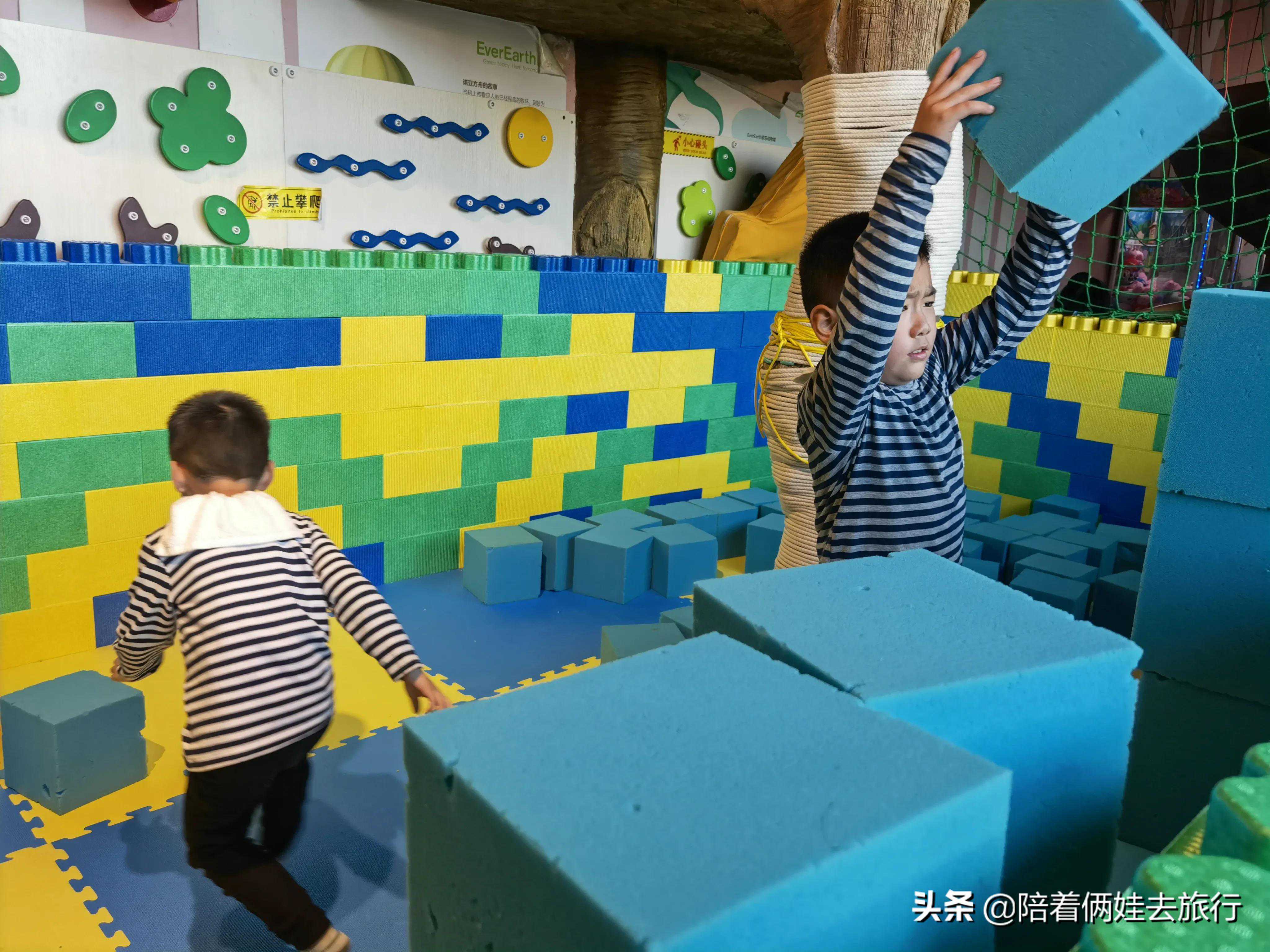这块儿童游乐区可以玩滑滑梯、彩虹爬网、海洋球、沙池、大积木等~