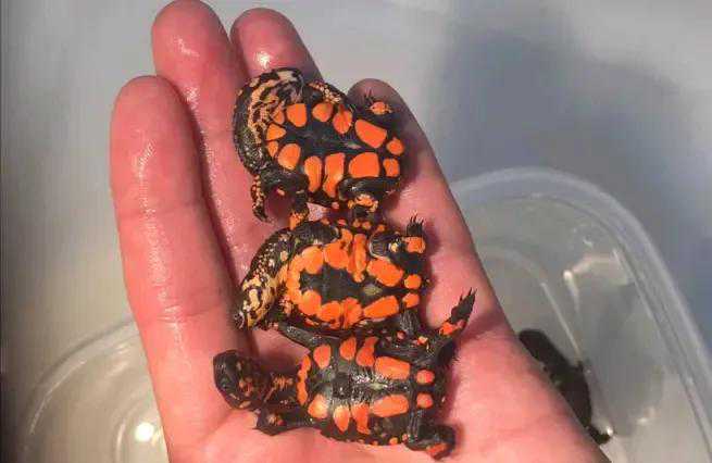 玛塔龟的幼龟,腹部非常鲜艳,可以警示捕食者。