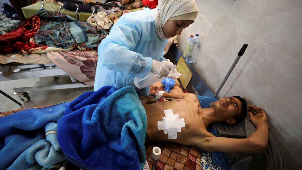 领取物资的巴勒斯坦人遇袭,伤者在希法医院接受治疗。
