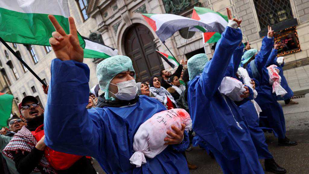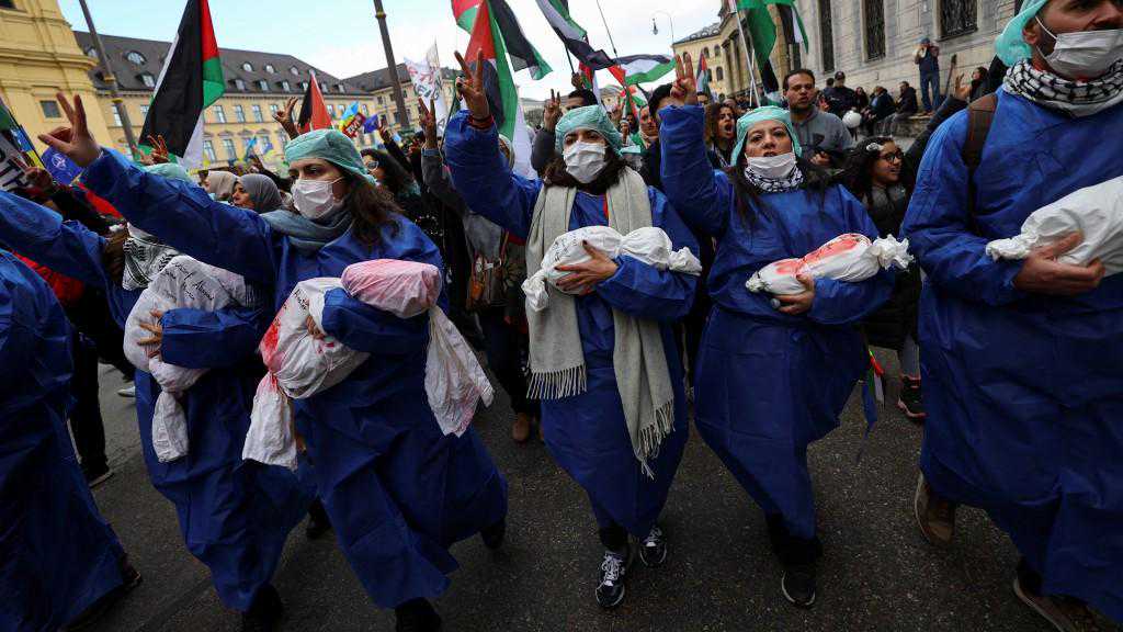慕尼克安全会议举行期间,撑巴勒斯坦示威者在慕尼克游行。