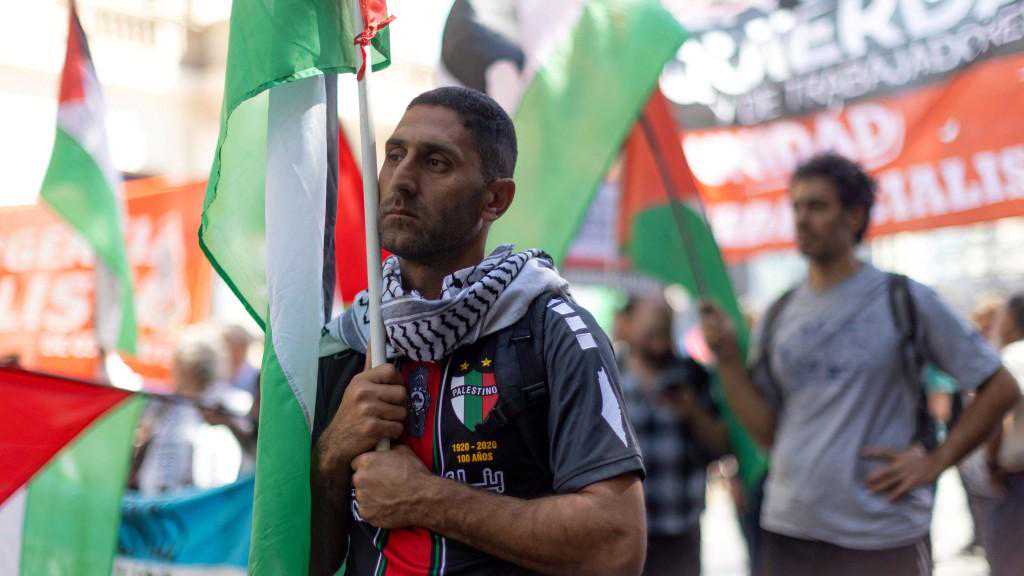 民众在布宜诺斯艾利斯举行撑巴勒斯坦集会。