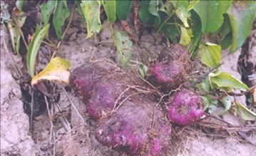 而一种长相十分特别的农作物,也就被人们广泛种植,虽然它的外形长相实在是过于奇特,内部是紫色的,外形则像一个大脚板一般,很多人就将其称呼为“脚板薯”。