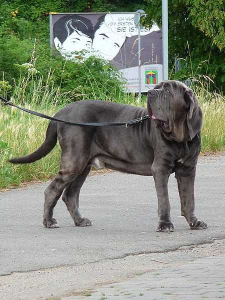 纽波利顿獒犬,体形巨大,魁梧结实。肩高:雄性65-75厘米;雌性60-68厘米。体重:雄性60公斤以上;雌性50公斤以上。