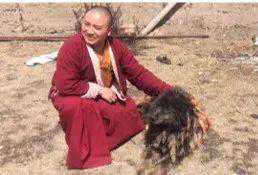 其次,是推动领养。其实寺院在推动领养上有着绝对的优势,有的寺院会给每一个领养者活佛的加持物,比如活佛的手掌印之类,或者是像果切寺那样的狗链等拴狗的工具。