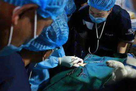 动物医生在给小狗做手术