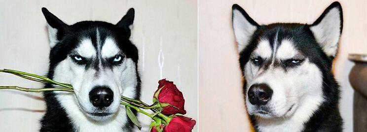 2.愤怒时的表情:哈士奇在愤怒时脸部的表情几乎和“笑”时的表现一样。一般嘴巴紧闭并会发出呼呼威胁的声音,四肢用力跺地,如果它的两前肢下伏,身体后坐,你就要小心了,这表明它就要向你发动进攻了