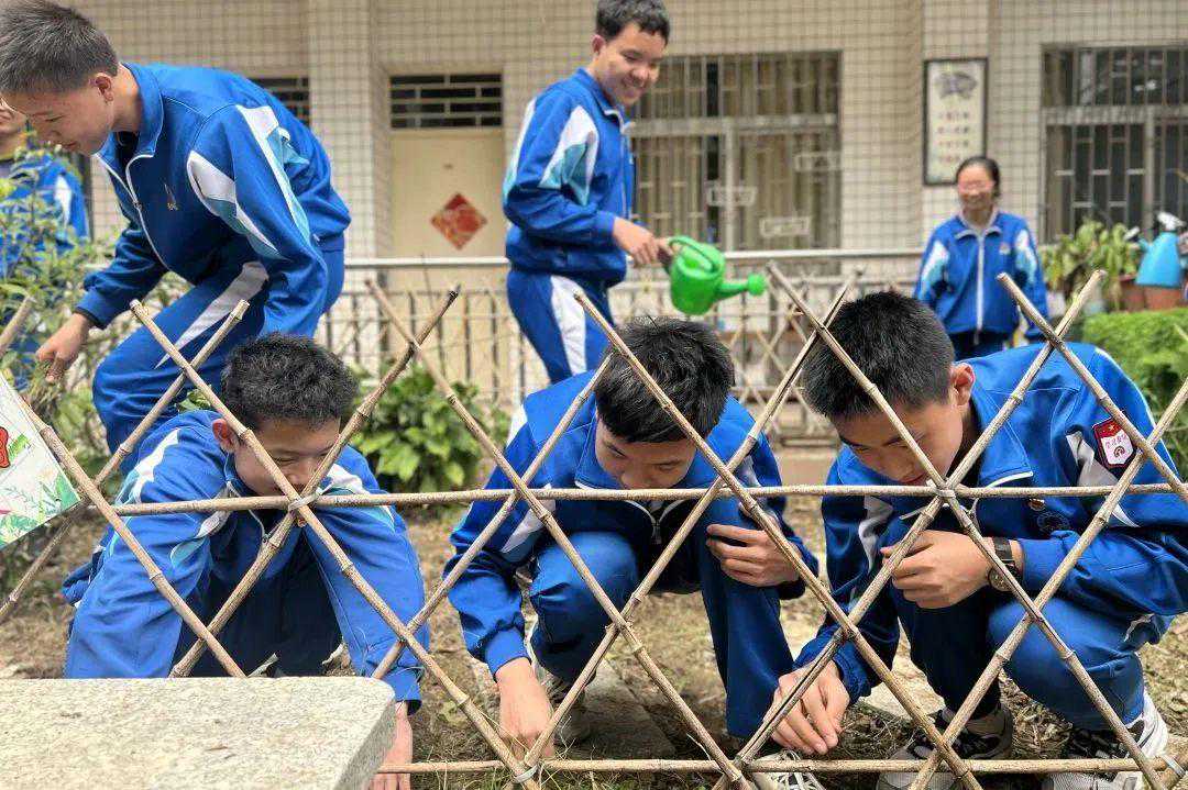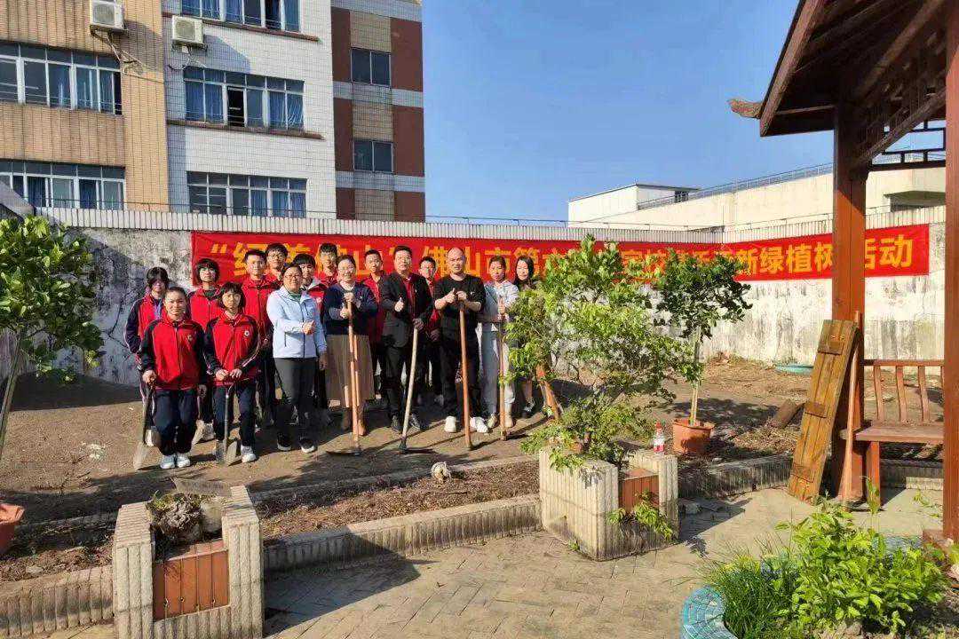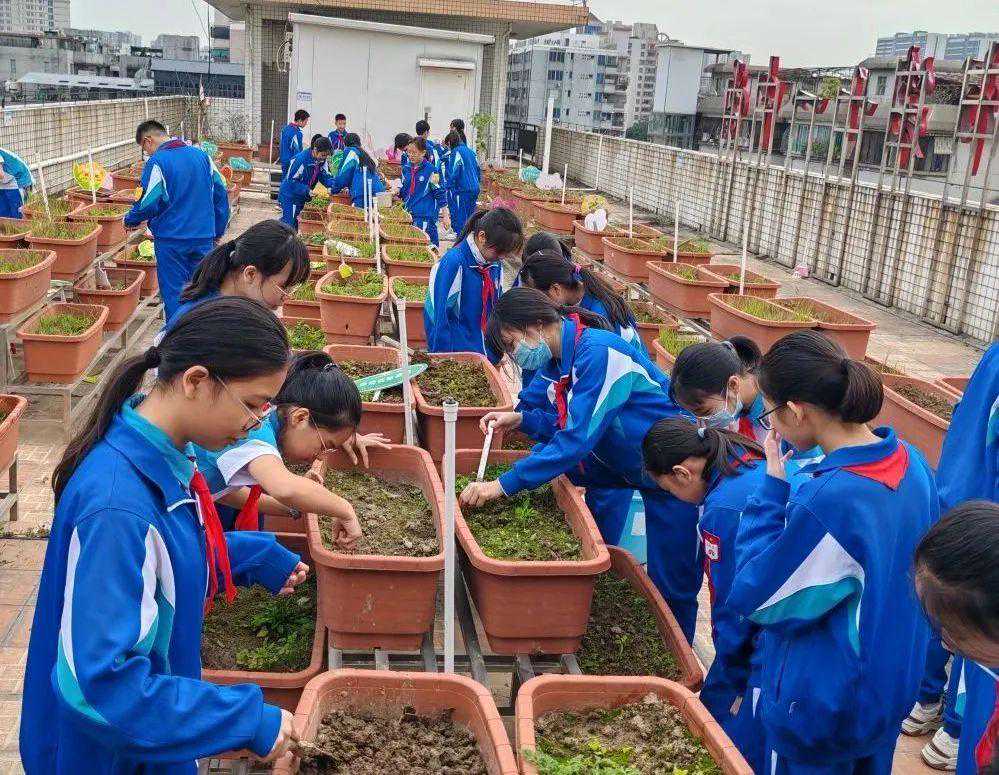 佛山市第十一中学开展“种植春天,绿满心田”植树护绿系列活动。同学们为学校中草药园进行锄草、修剪,并种植新的树苗;在学校天台农场播种培育好的蔬菜幼苗;在教室内布置植物角,开展“家庭种植”。