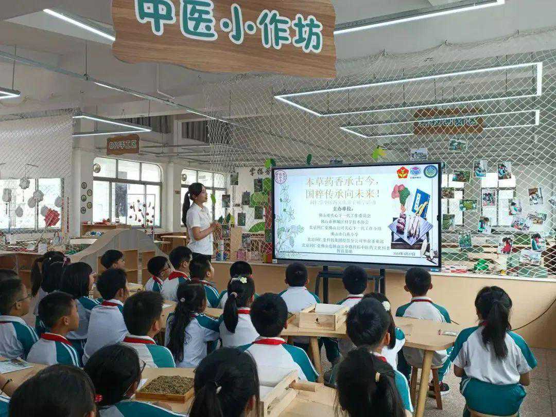 佛山市白燕小学联合北京同仁堂中医药文化科普教育基地,开展以“本草药香承古今,国粹传承向未来”为主题的中医药文化进校园活动。同学们一起学习艾叶药材知识以及妙用方法,结合“灸”法学习日常养生保健穴位,并动手制作艾条。