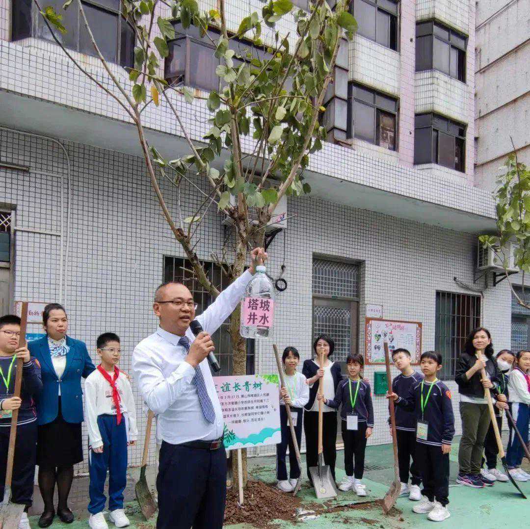 在佛山市第五小学,全校师生开展了主题为“畅想春天绿美佛山和美乡村美丽庭院”的综合实践活动暨“绿美佛山我争先”主题党日活动。一起春游、野炊,在亲手种植的小树苗上挂心愿卡,就地取材制作鲜花饼、植物拓印,融入大自然、感受大自然馈赠的美好。