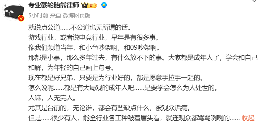 如今的电竞圈这种程度以及规模的撕逼非常罕见,大家都是有头有脸的人物,如果没有利益牵扯都会保留最基本的体面。在数千万网友面前像泼妇大妈一样吵架,影响不好也太过丑陋。