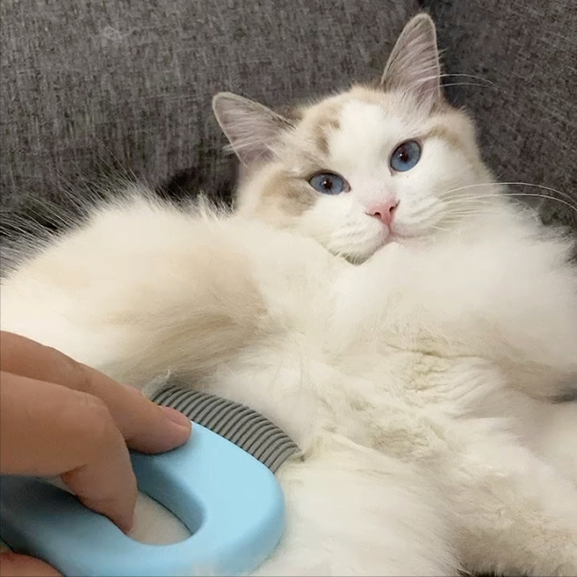 由于布偶猫的毛发比较长,要是不勤打理,就很容易出现粗糙、打结等情况,这样看起来就丑丑的,所以一定要勤给它梳毛,最好定期补充一些卵磷脂、鱼油等,可以美毛!