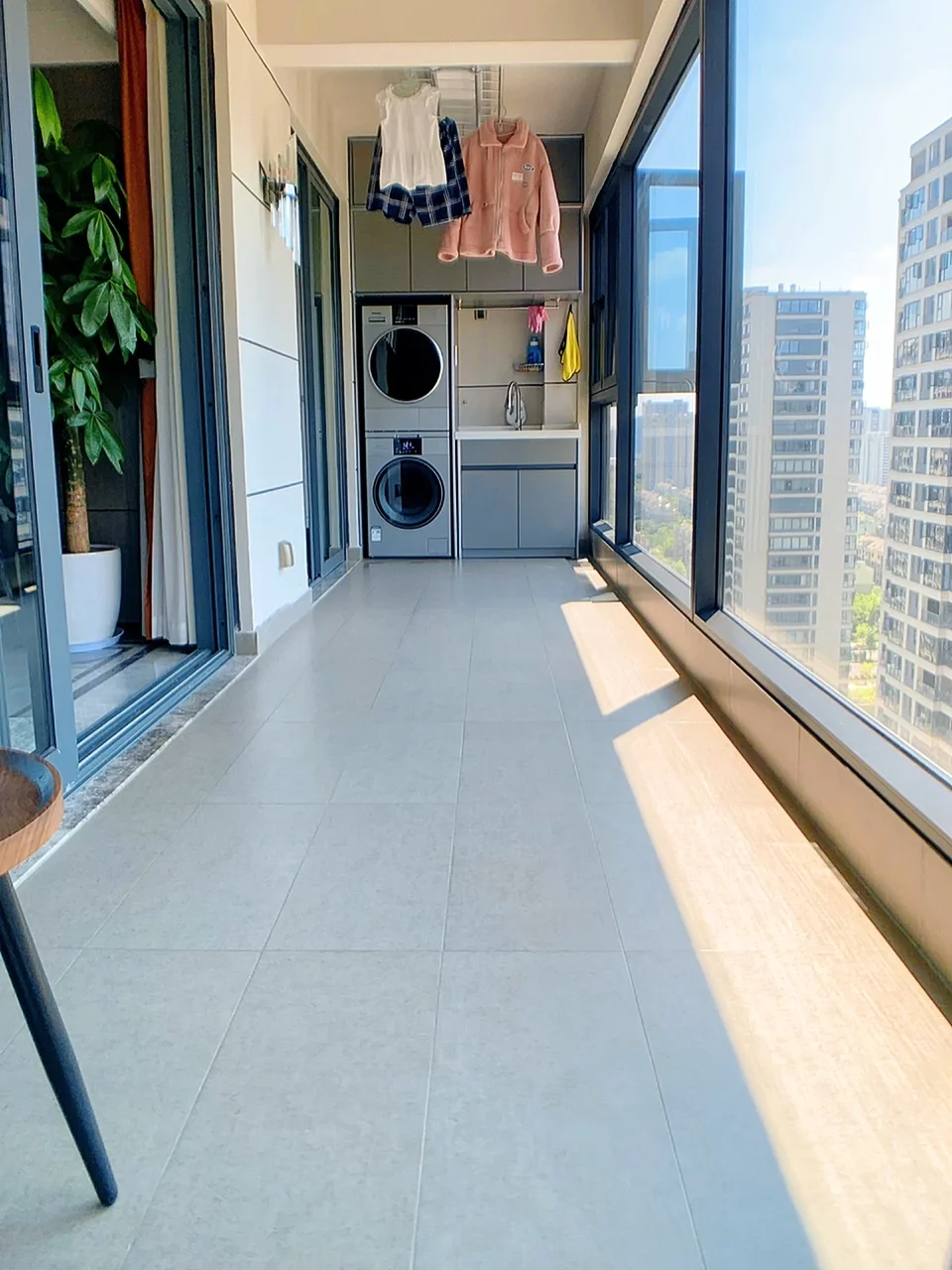 住进来才知道,洗烘机放阳台真的是吵死了,当时设计的时候完全没想到这一点,在客厅看电视真的静不下来,能放卫生间的千万不要放阳台,真的!听劝吧