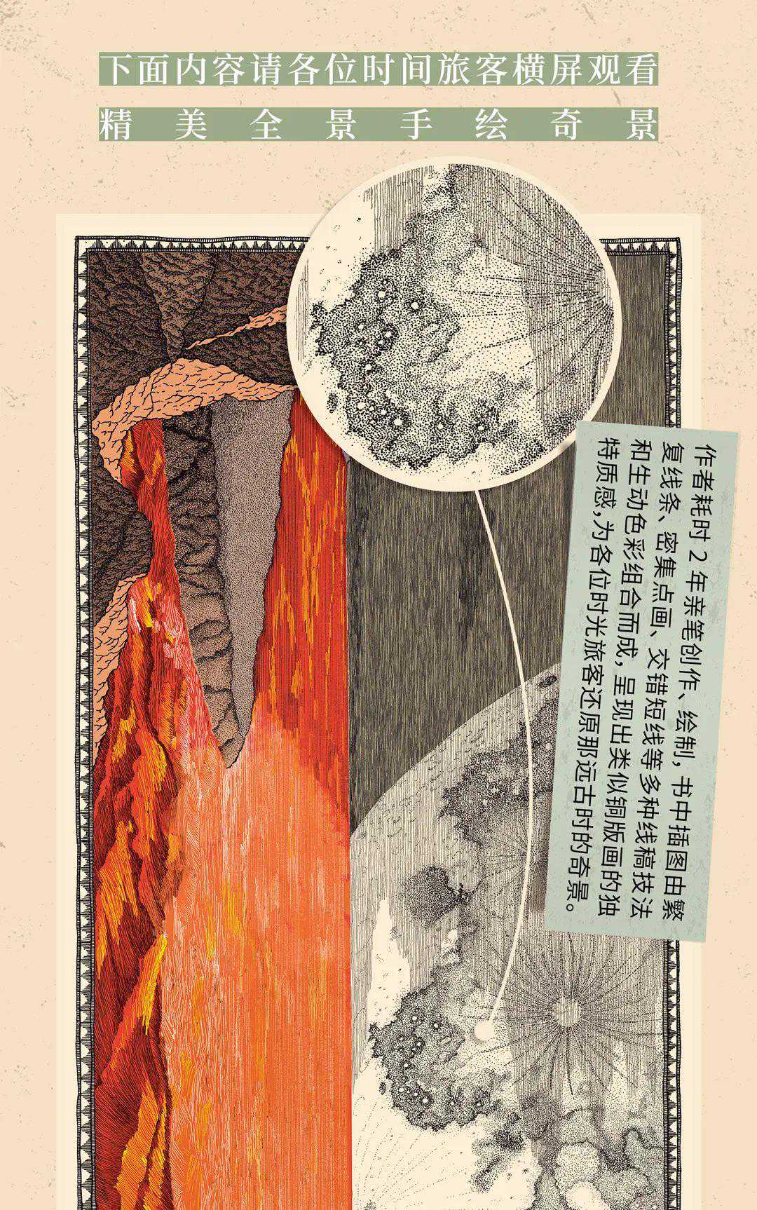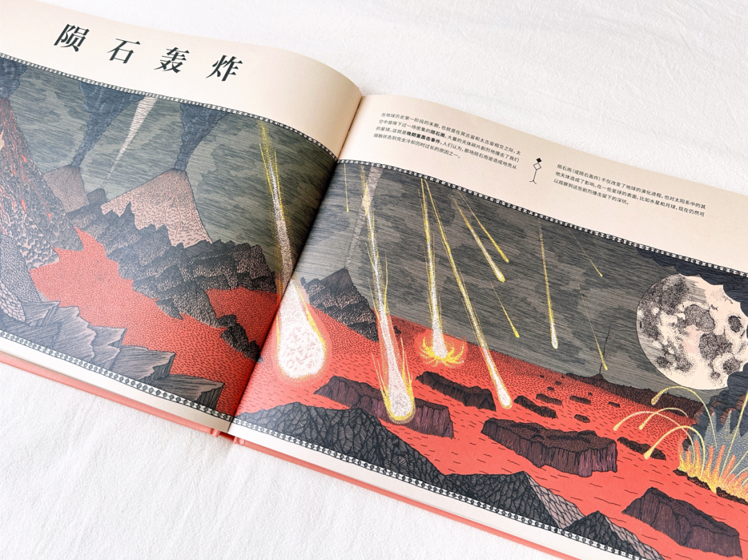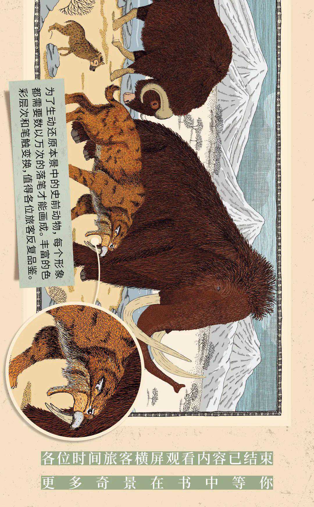绘者耗时两年才完成的艺术科普神作,每幅图片均以线条与点的疏密变化来展现复杂的生物形象与环境场景,一个简单的动物也需要上万次笔触才能完成,总体呈现出蚀刻版画般的独特质感与历史沧桑感。