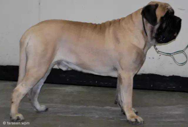 英国獒犬肩高70-76厘米;重量60-110公斤。雄性较大。