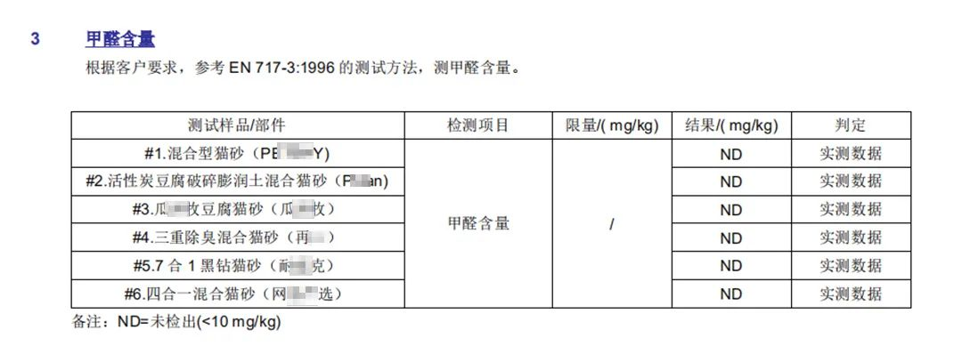 同时,我们也把这6款猫砂送往了第三方实验室,参考人造板材的甲醛释放量测试方法进行了检测。