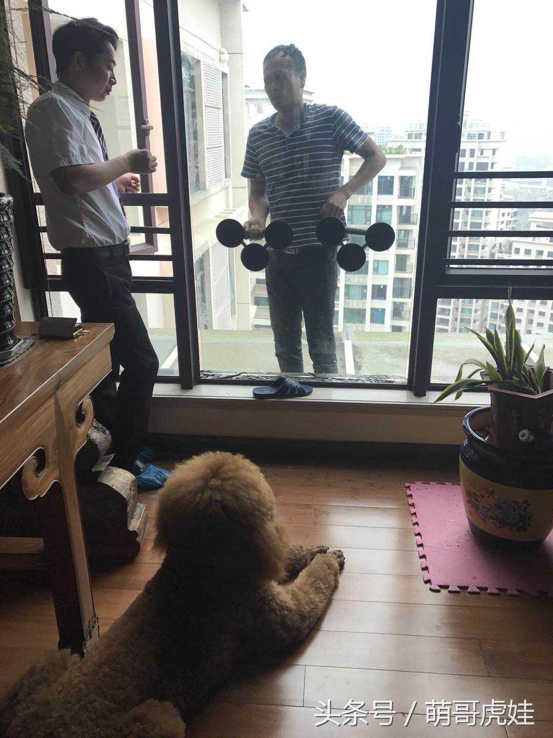 之前珠海大台风,家里的玻璃需要修理,今天工人上来更换,女主人虎妞不在家,吩咐老公虎娃看着,虎娃一直在旁边认真盯着师傅干活儿,心爱的老婆指派的工作一点也不敢马虎~