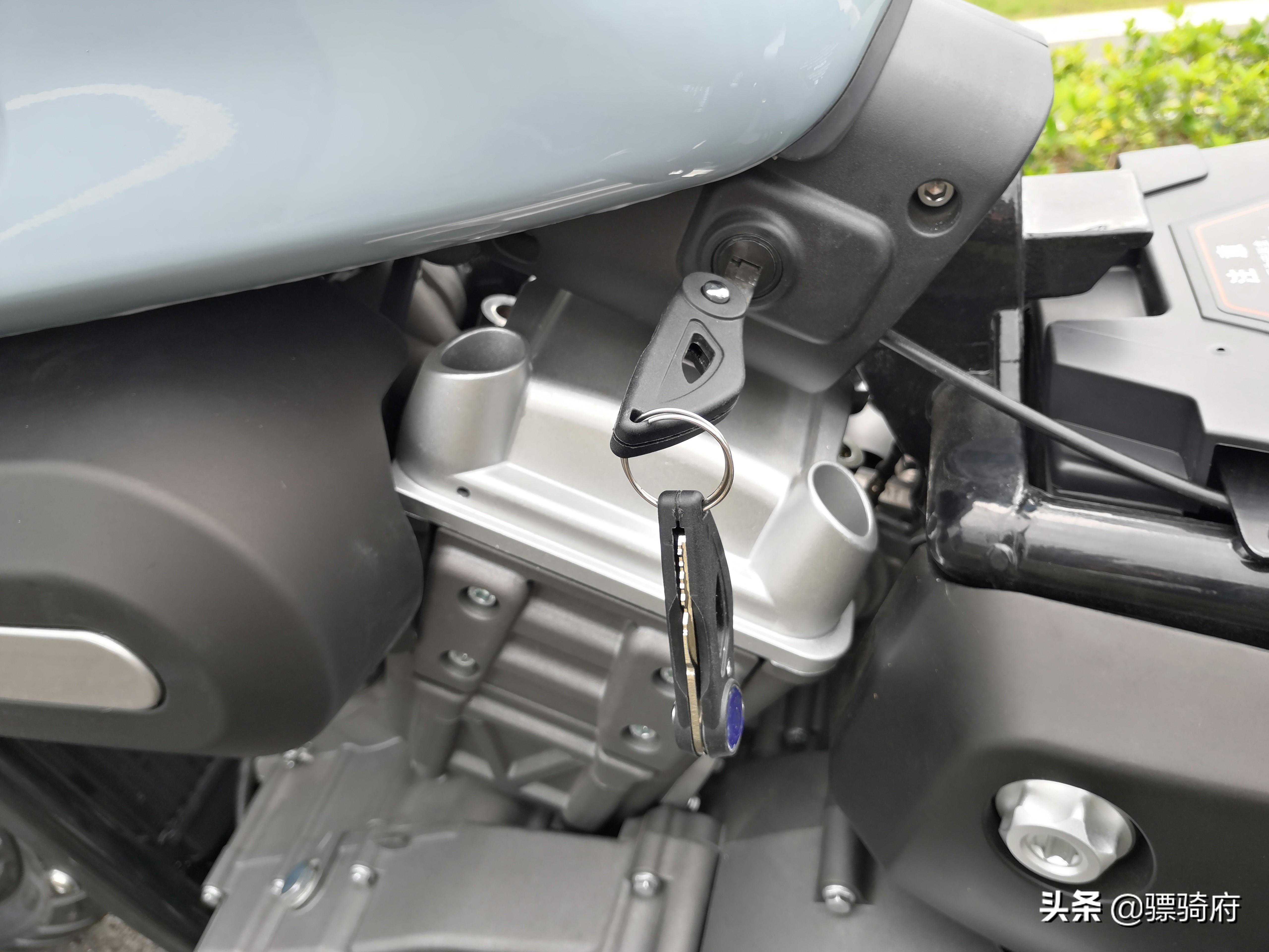 坐垫开启锁孔位于油箱后方,需要将车钥匙插进去开启。
