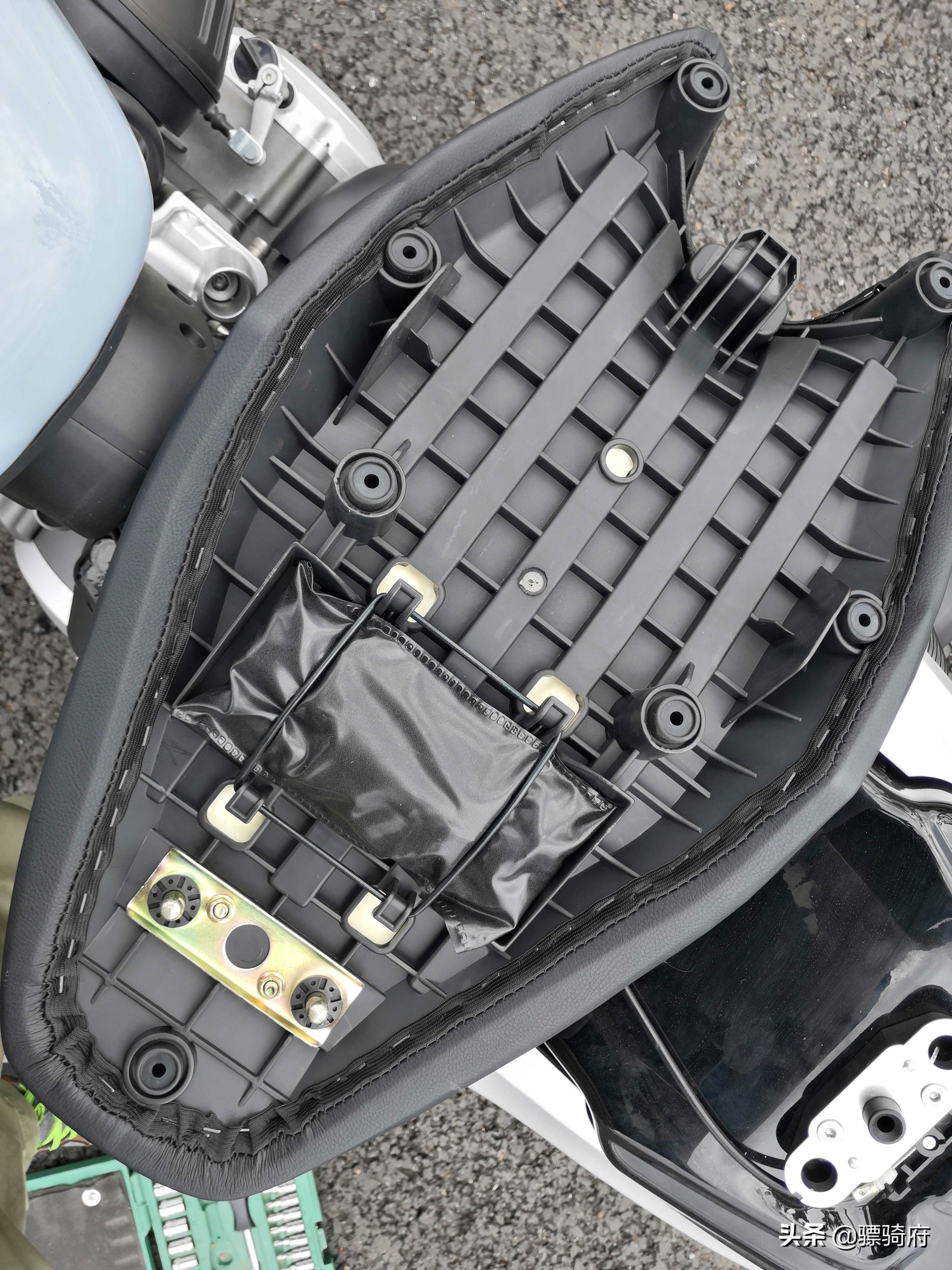坐垫的弧度比较大,但是蒙皮与填充物之间贴合紧密,并没有出现蒙皮与填充物分离的廉价货现象,实际上奔达去年推出的星罗400也是这种类型的坐垫,舒适度还可以。