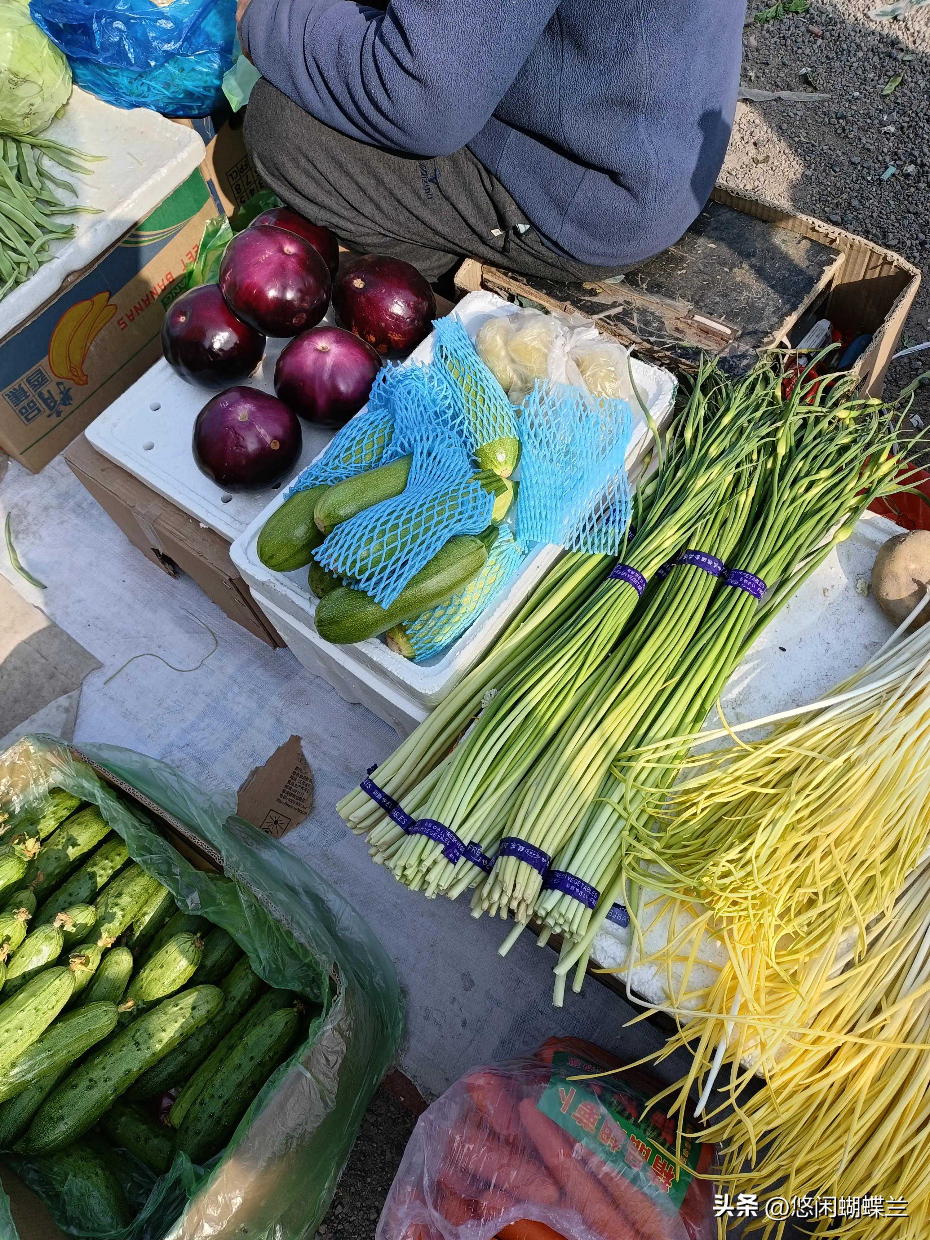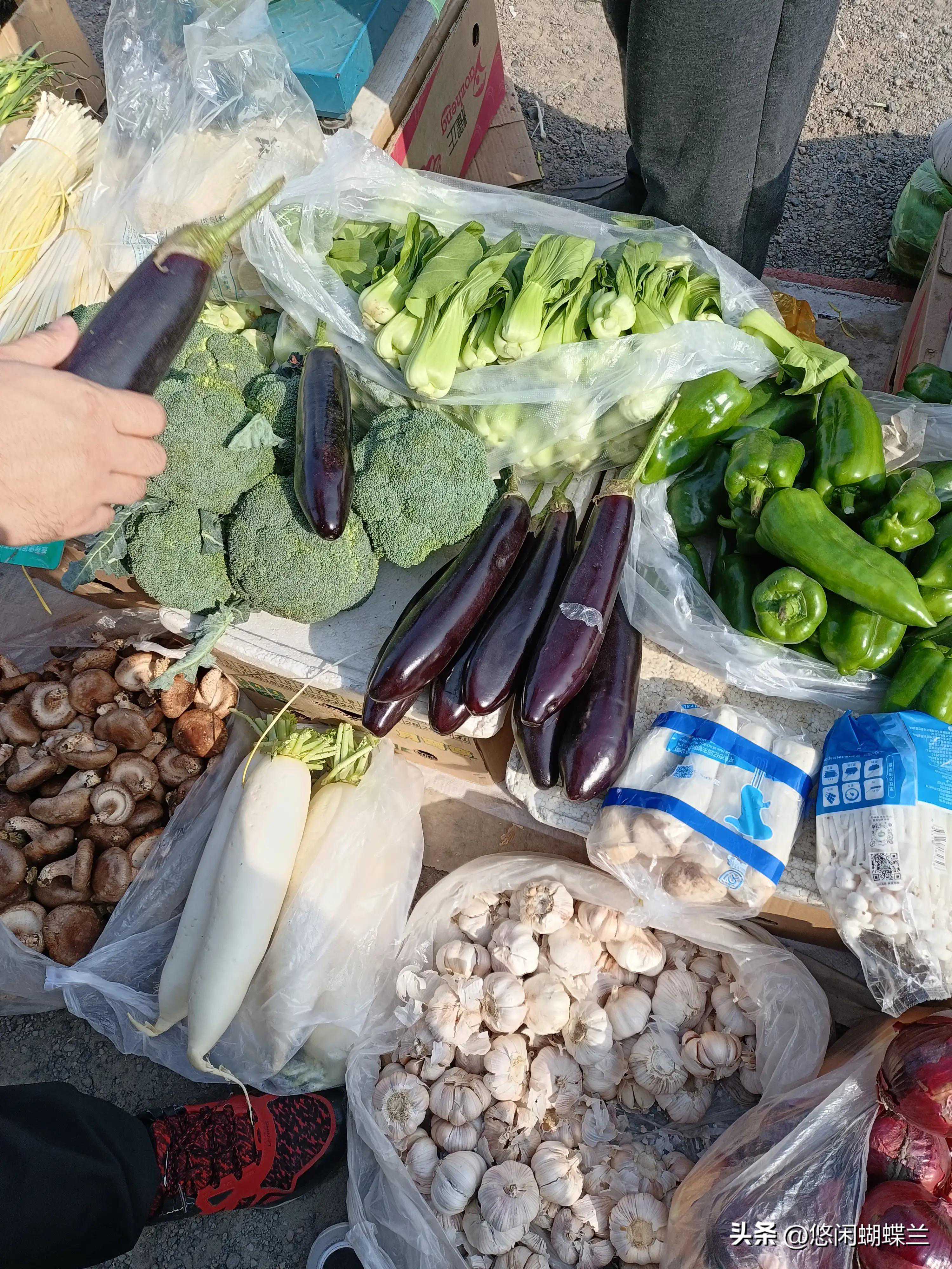 这个老板太滑了,还是老板娘实在,老板娘没理他,从车上拿了好几根儿又大又新鲜的茄子。