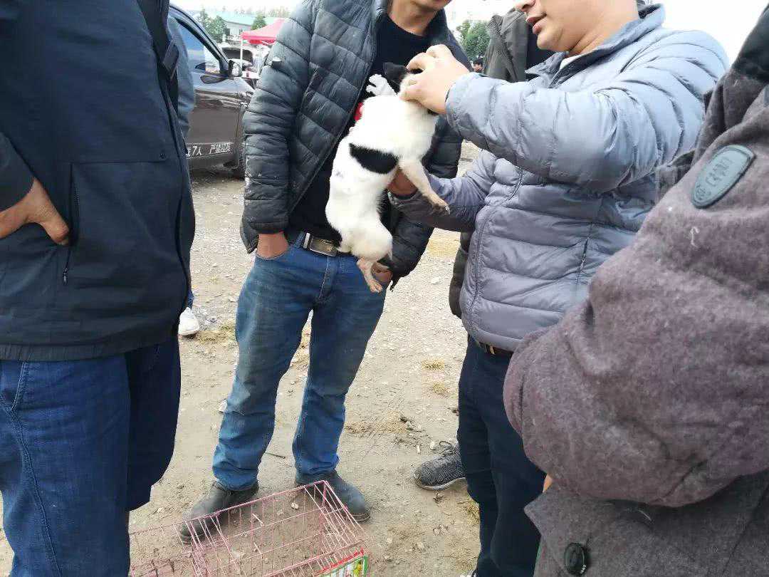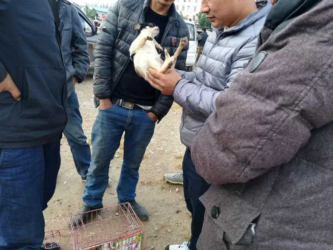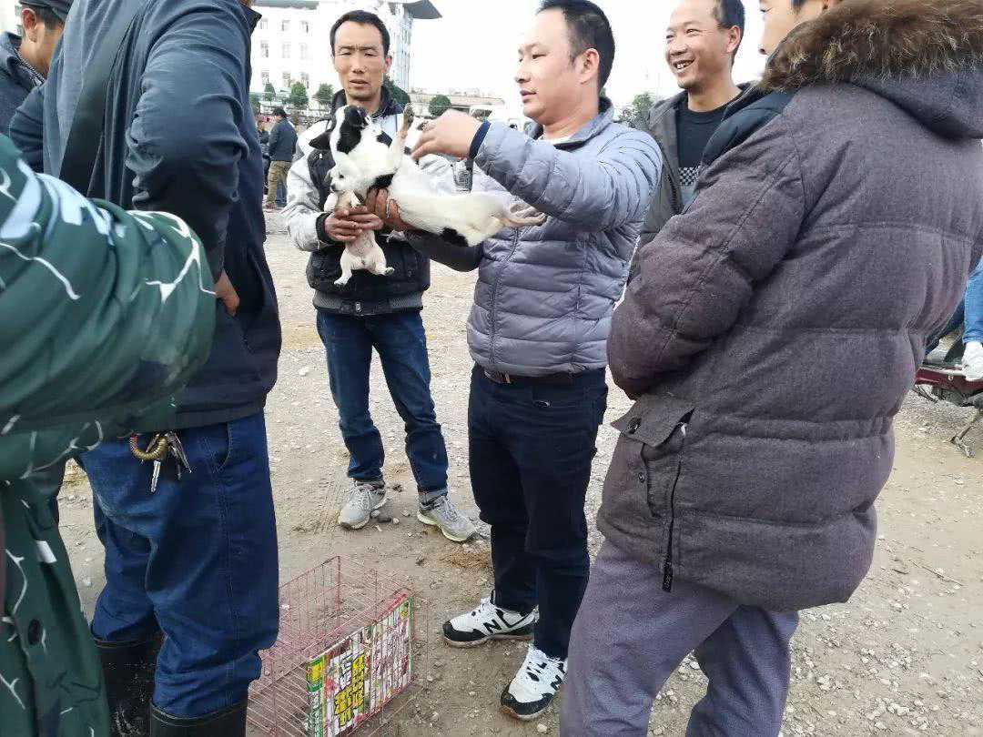 图中的商贩正在狗市当中,像周围的买主展示自己带来的吉娃娃,可以看到,商贩所出售的是一只黑白相间的吉娃娃幼犬,但是从体型来看,笔者猜测这很有可能是一只串种吉娃娃,毕竟他的体型已经跟泰迪犬差不多大了,毕竟吉娃娃成犬的体型也很难达到这样的大小,更不用说是幼犬了。