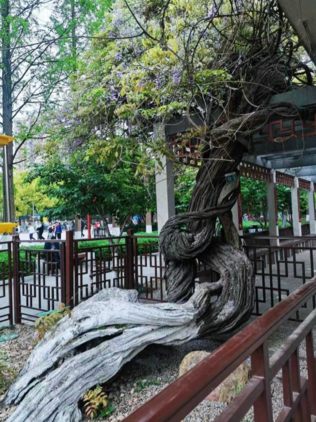 近看是一排排垂下的花枝,远看恍如层层紫色花瀑布,壮观华美,路过的人都忍不住驻足拍照,惊叹深圳不愧是土豪金城市。