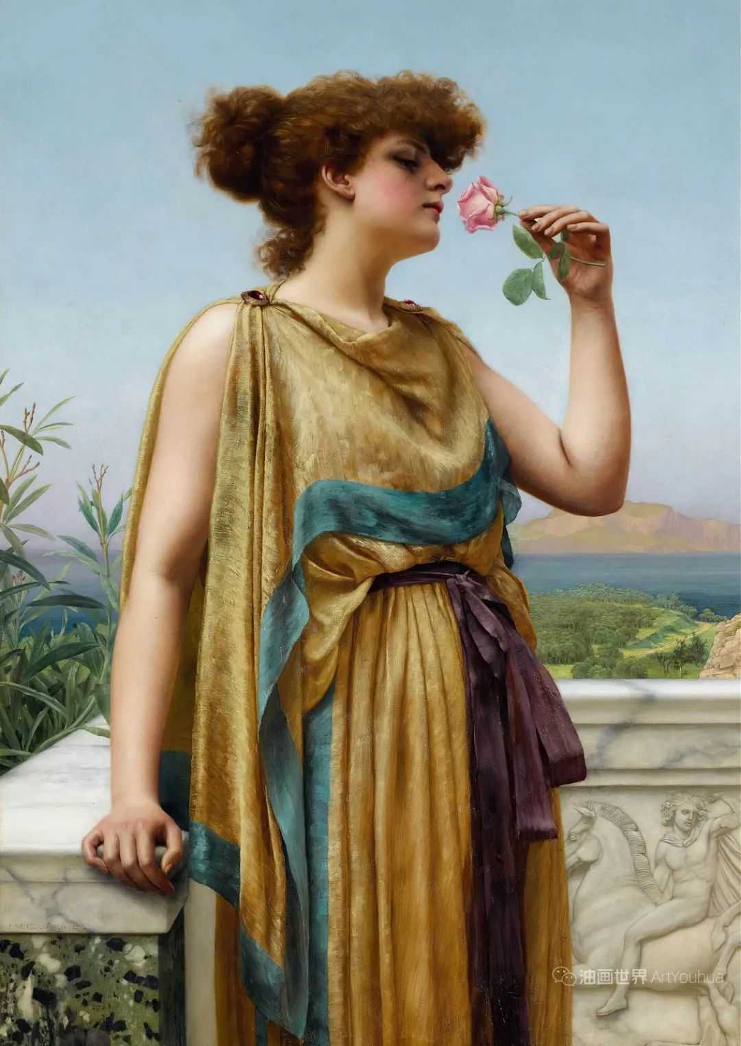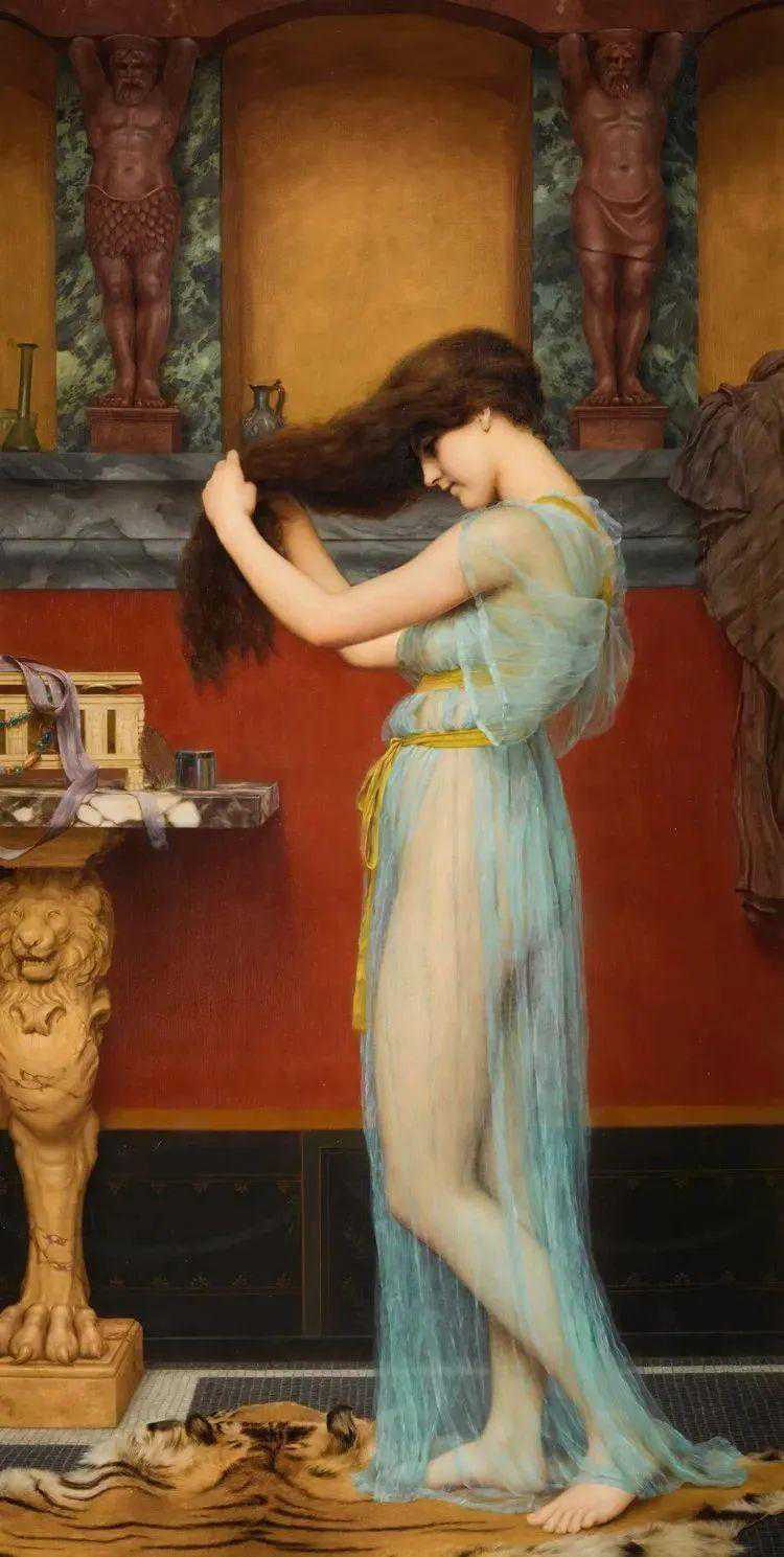 约翰·威廉·格威德(JohnWilliamGodward1861-1922),英国维多利亚女王时代的新古典主义画家。格维得最擅长的就是画美女。尢擅长于用女性柔软的纱织面料的服饰来体现她们肌肤的肉感。他画笔下众多的年轻美女大都神态悠闲而感性。但这一重要的艺术家几乎没有得到好评,他的生活仍然是一个谜。