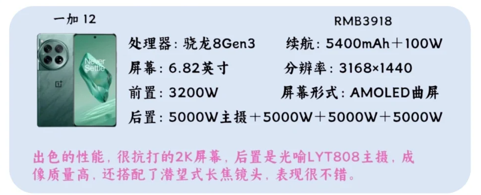 出色的性能,很抗打的2K屏幕,后置是光喻LYT808主摄,成像质量高,还搭配了潜望式长焦镜头,表现很不错。