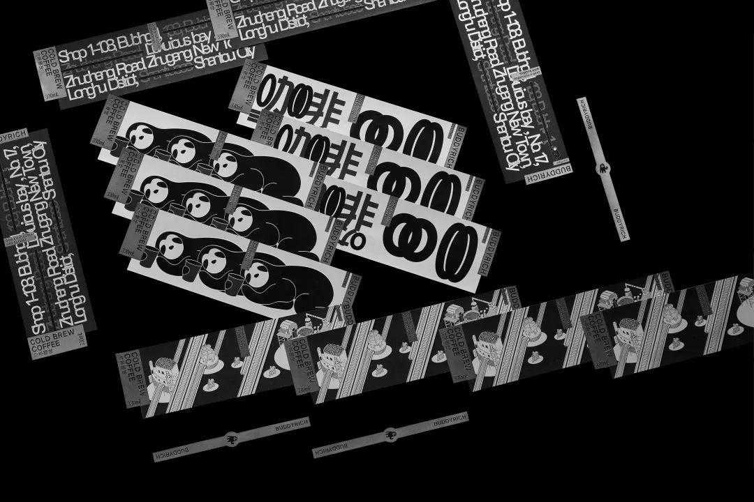 BuddyrichCoffee是一家小型咖啡店,不到30平方米。观众是年轻的消费者,喜欢尝试新口味。客户希望设计品牌的混合和多元化的概念。在设计中,我们试图重复和重叠中文和英语字体,品牌IP图像,咖啡店地址,城市建筑地标插图等。各种元素都使用不同的脱位混合排版的排版意味着品牌的多样化和混合的个性。以这个概念为指导的整个设计集是基于字体,插图分离,重组,多样化和混合的思考。