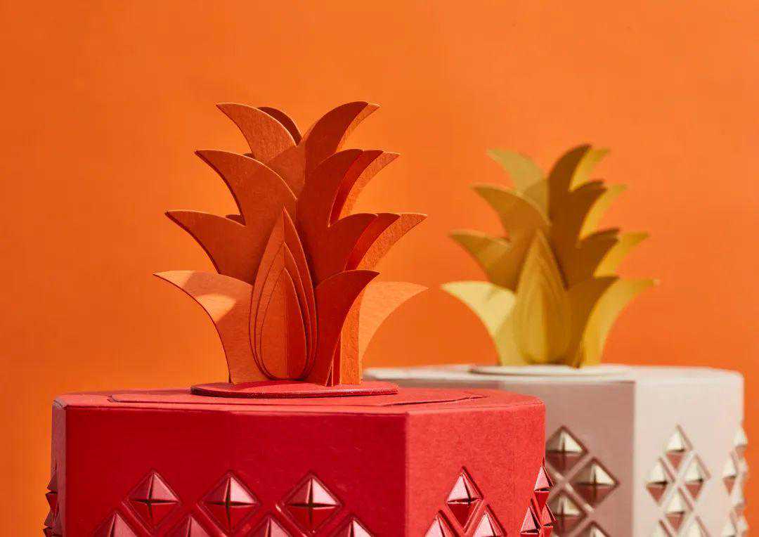 令人惊叹的触觉和精确工程的这种结合将纸包装提升到了一个新的水平。拆箱的经验向我们表明,纸张不仅提供了结构。它也可能是欢乐和惊奇的根源。这款用于菠萝糖果的多层包装模仿菠萝的形式和质地,同时玩悬挂式拆箱。(评委寄语)