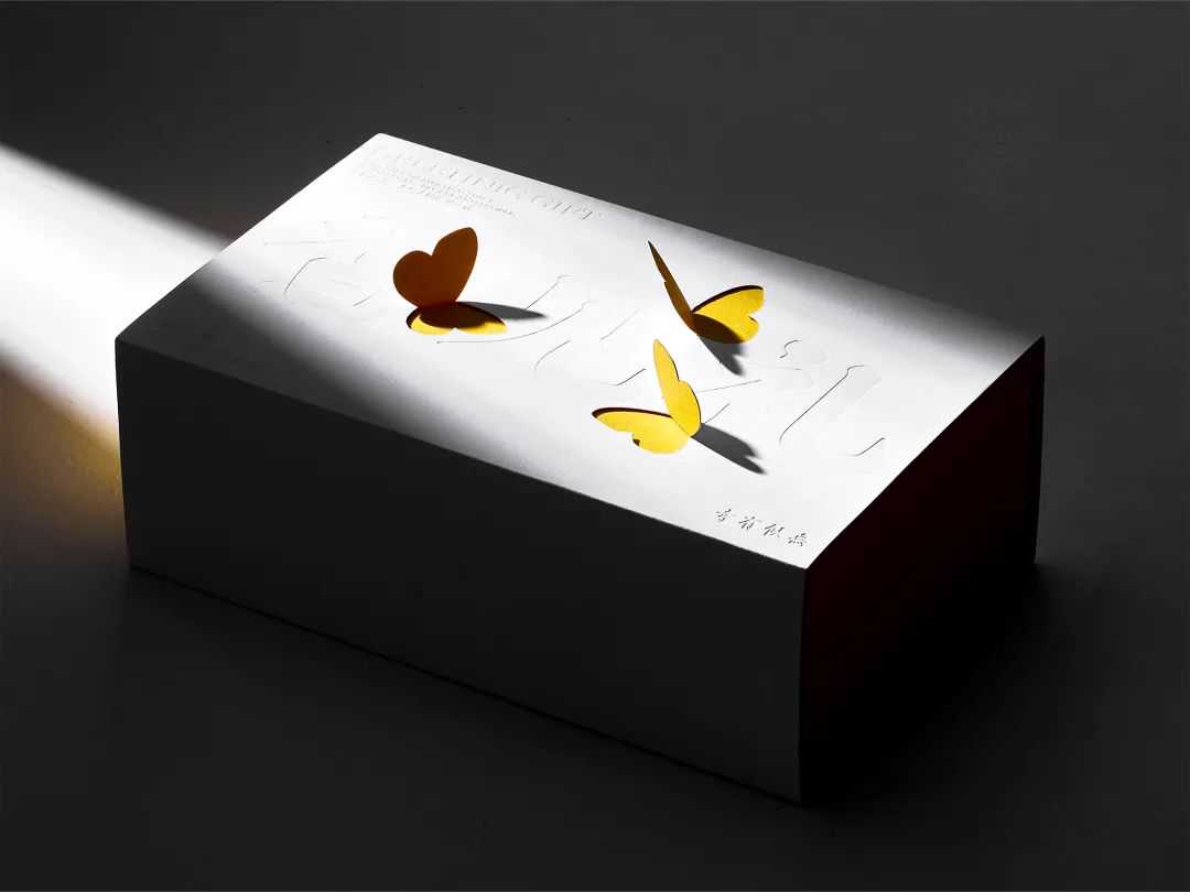 这是一个无味的芳香疗法产品礼品盒。我们使用纸本身的折叠结构来传达香气的自然香气,指导用户预测内部精油的愉悦气味。在白皮书上,通过折叠结构呈现了充满活力的黄色蝴蝶,而其他信息则通过压花在包装上呈现,从而形成了形式和含义的完美融合。