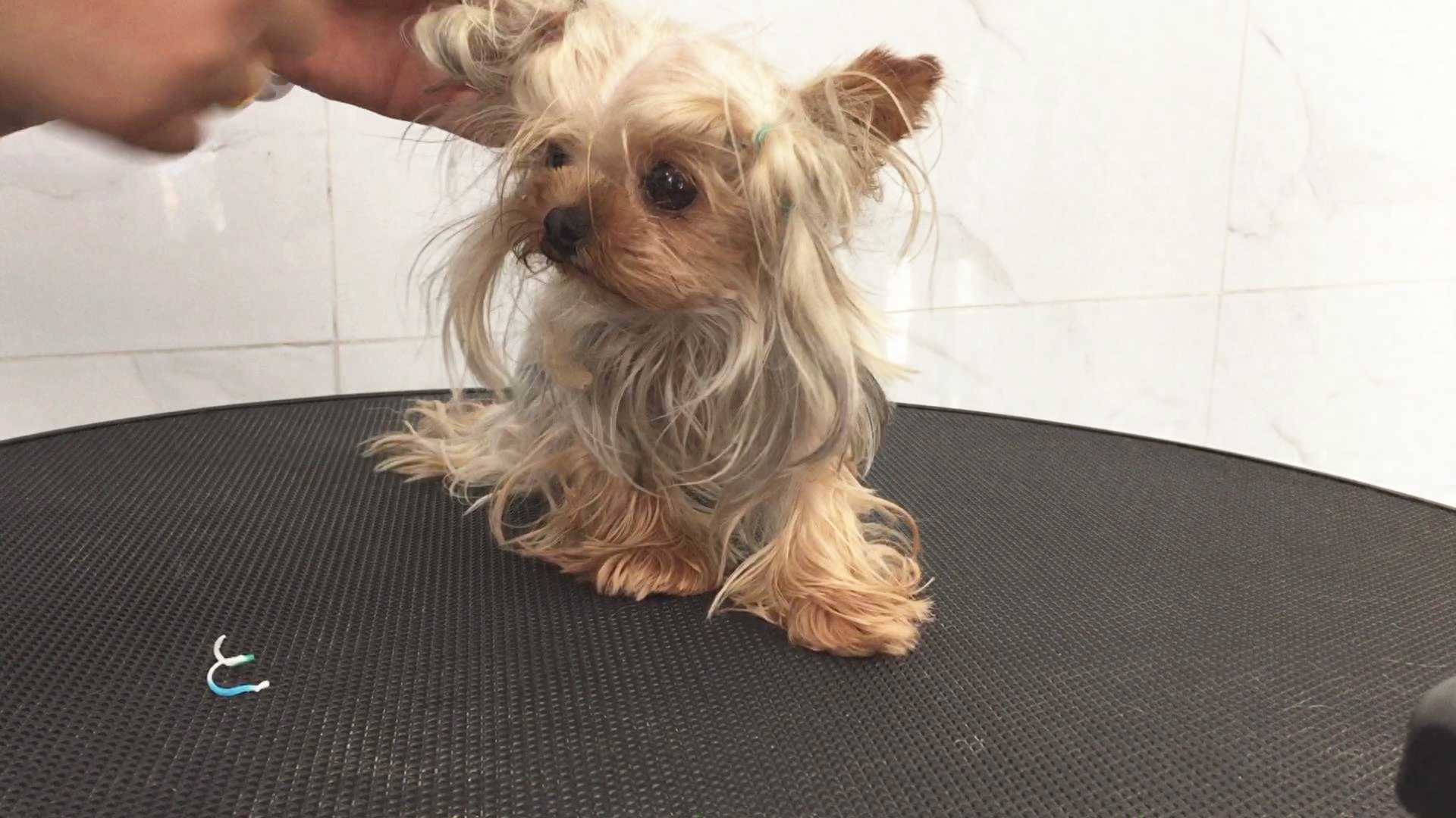当当当当,洗完后这只小约克夏狗狗立马又变回了小可爱,美美的小不点又出现了。汪:今天的我依旧绝美!