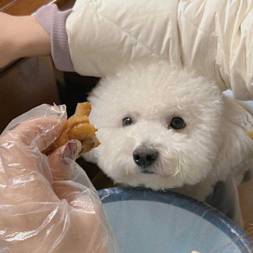 如果比熊不肯配合擦眼睛,主人可以用点小零食分散一下比熊的注意力,这样比熊就没那么抗拒擦眼睛了。