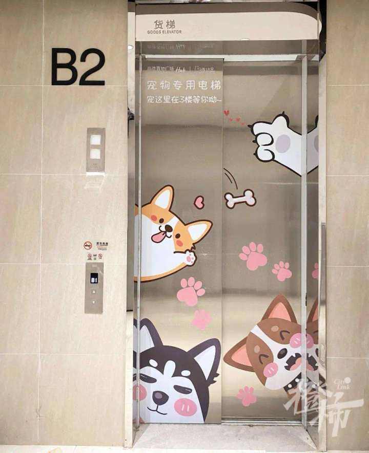 高德置地广场,杭州首个宠物文化街区,地库还有专属宠物的电梯。商场一楼就可以租到宠物推车,街区提供宠物用品、餐厅、洗护、训练等一站式服务,还有一块人工草坪可以玩耍。