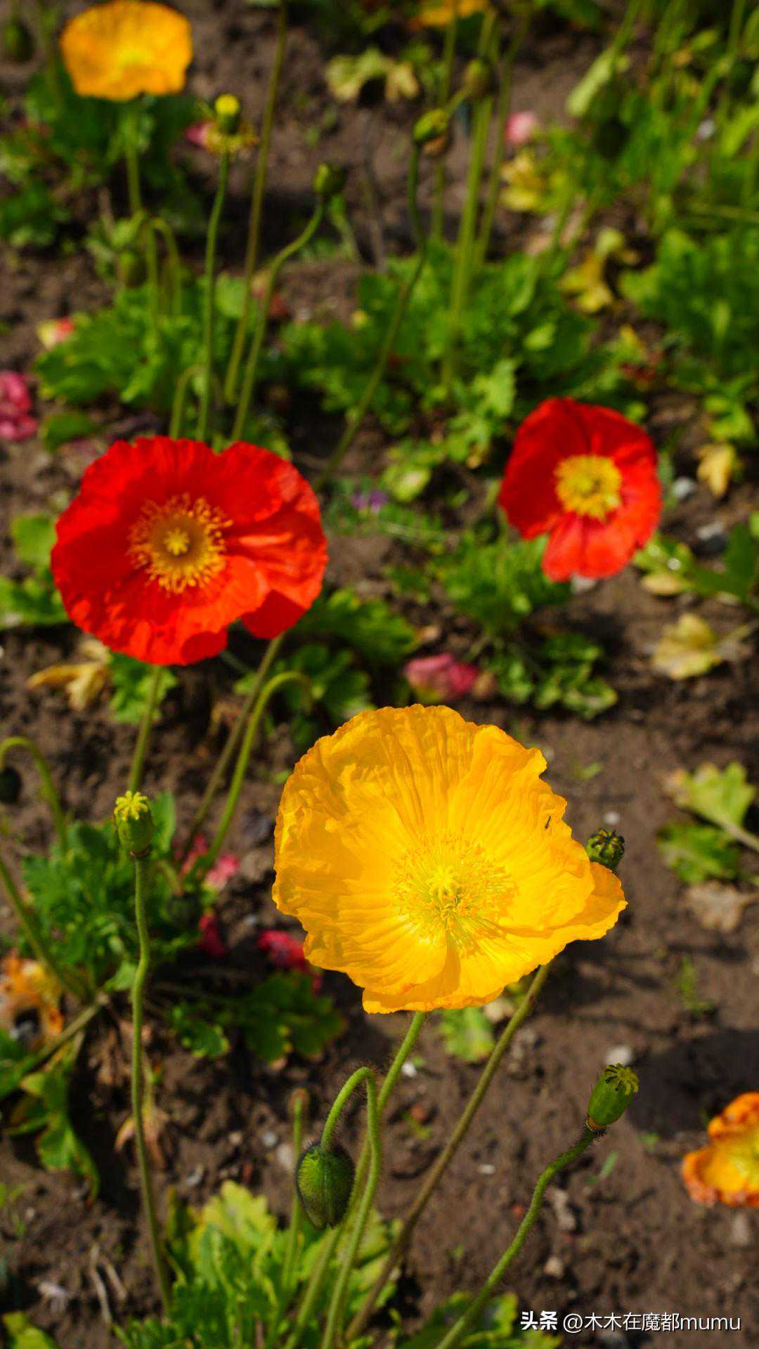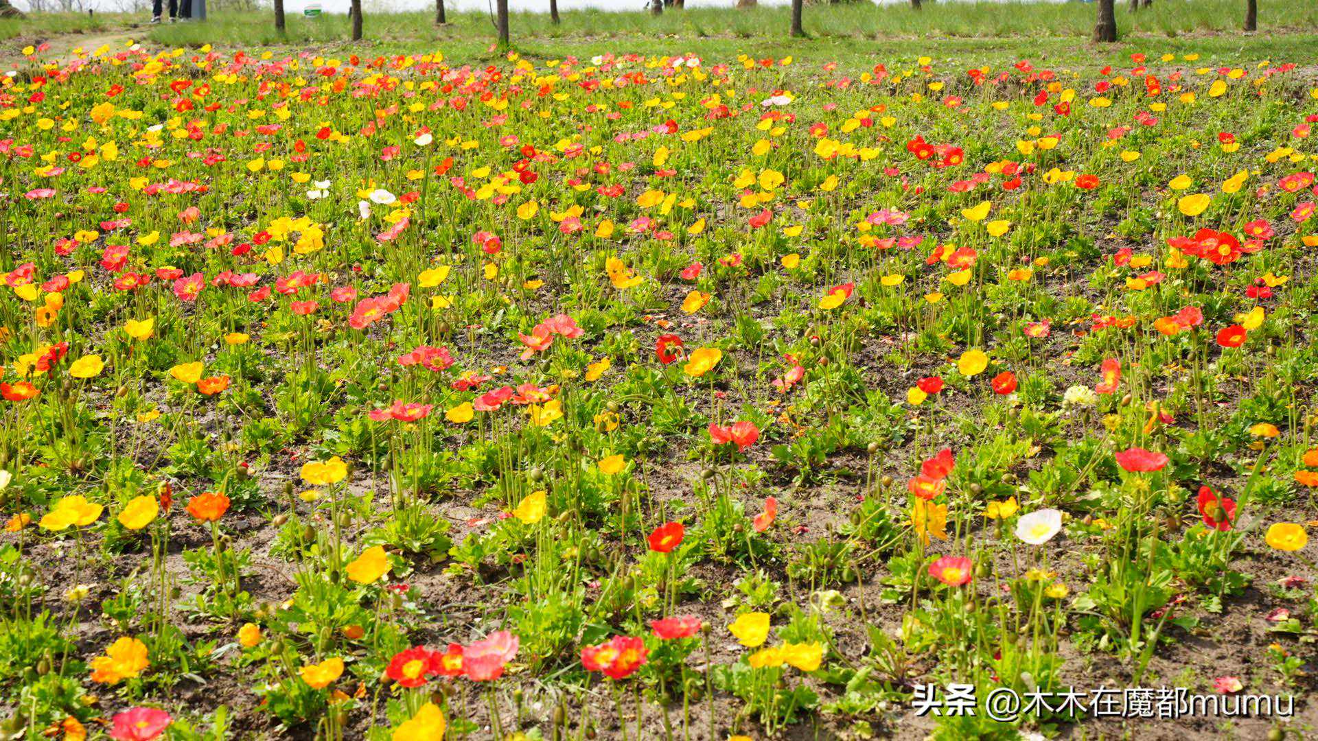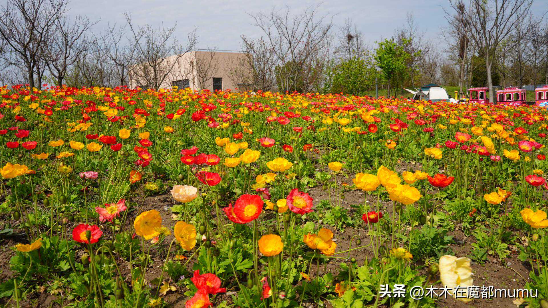 在粉蝶花海的另一侧,虞美人花田如一幅精美的刺绣,静静地铺陈在春日的阳光下。