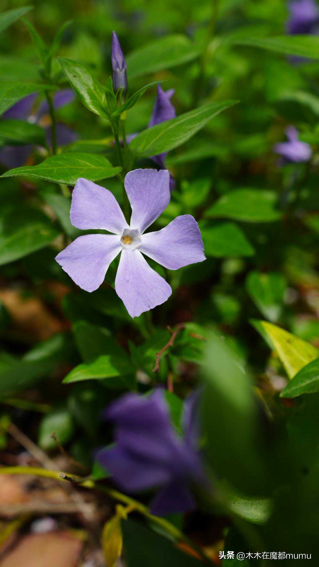 角落里,一片蔓长春花在静静开放。它们犹如地面上蔓延的蓝色精灵,花朵小巧而精致,呈现出一种淡雅的蓝色,花瓣柔软而光滑,如丝绒般细腻,散发着一种清新的气息。微风吹过,蔓长春花轻轻摇曳,仿佛在向人们诉说着春天的故事。